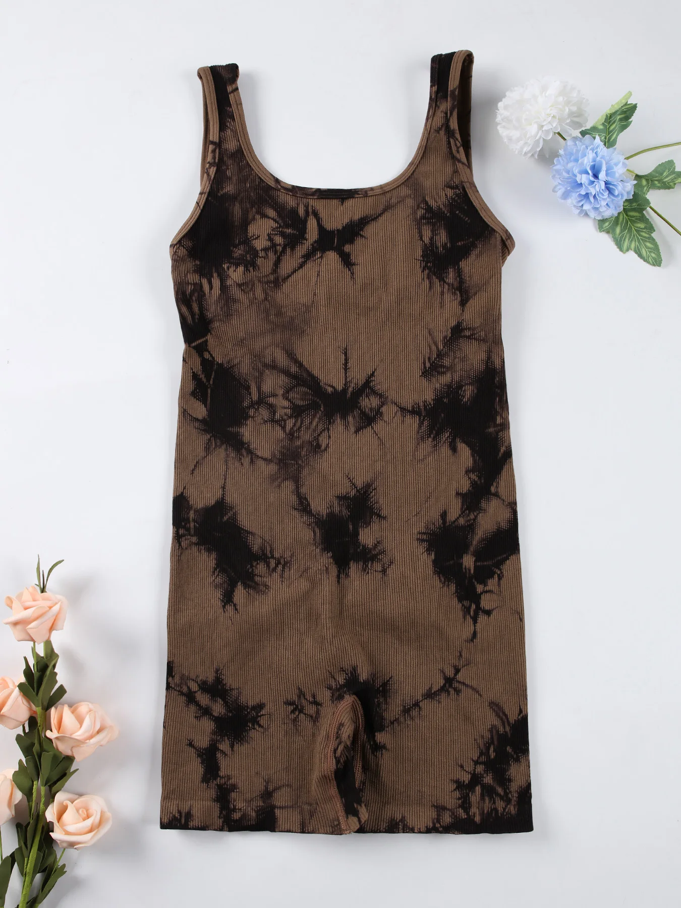 This women’s backless yoga jumpsuit is designed to combine comfort, flexibility, and a flattering silhouette in one streamlined piece. The U-neck and sleeveless design allow easy movement, while the breathable knit fabric keeps you comfortable during yoga sessions, workouts, or active days.